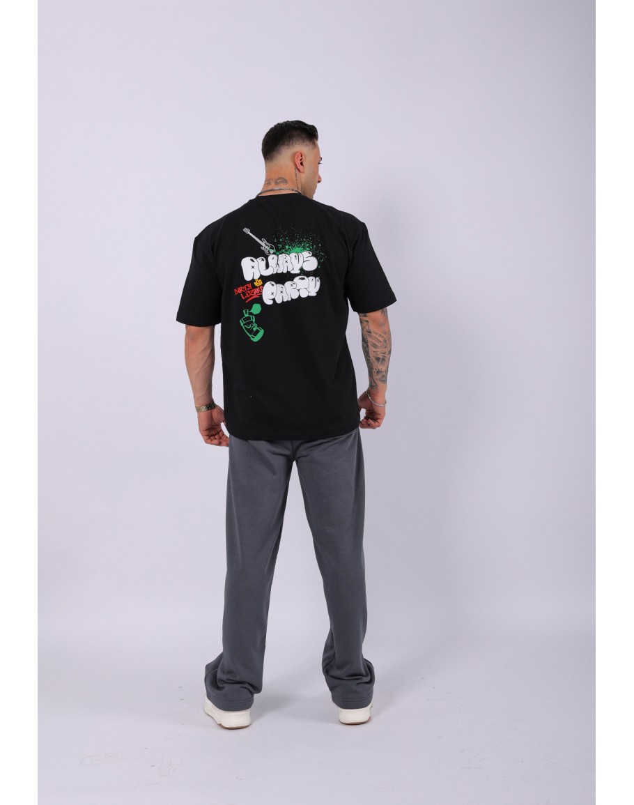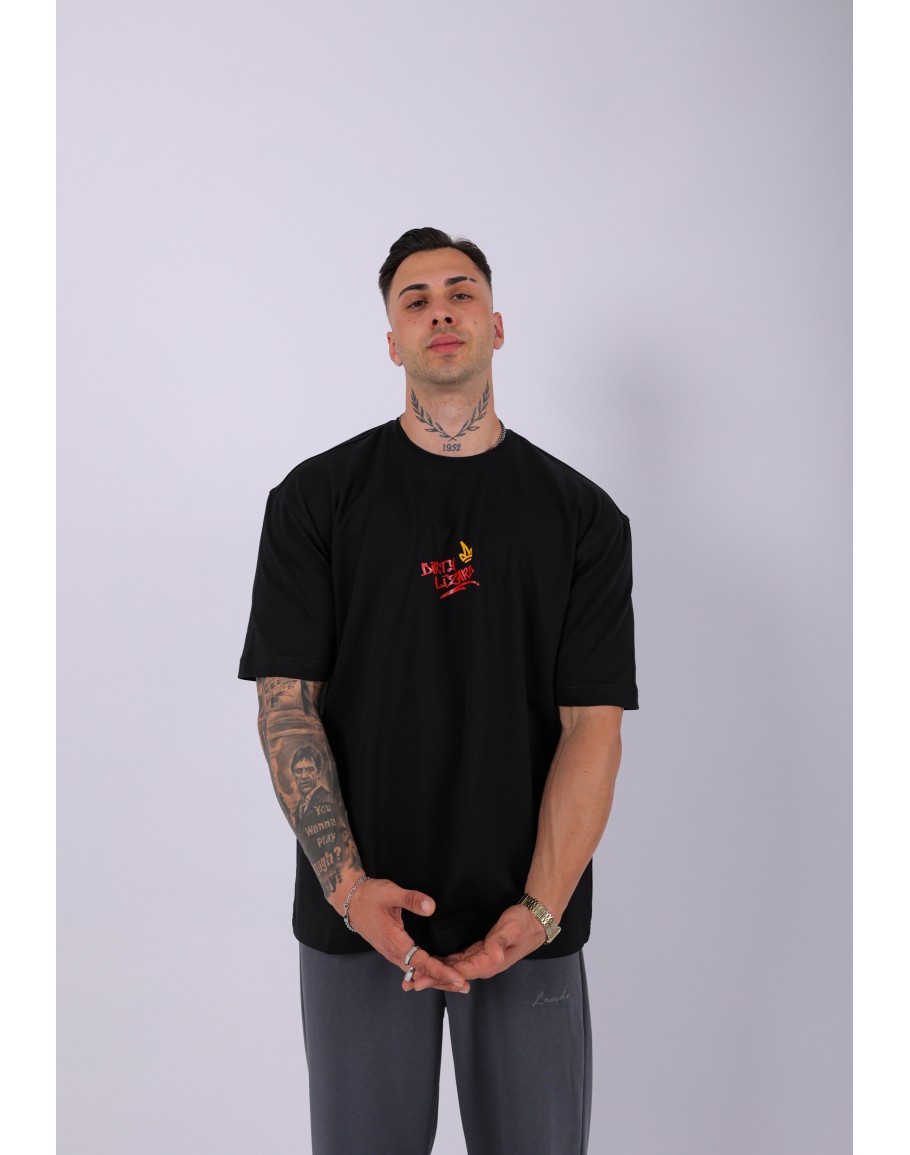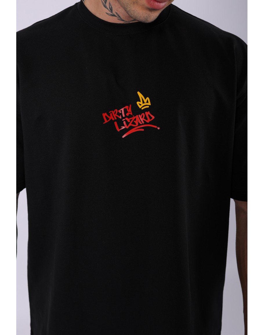 UNISEX DİRTY LİZART BASKILI OVERSIZE T-SHIRT SİYAH